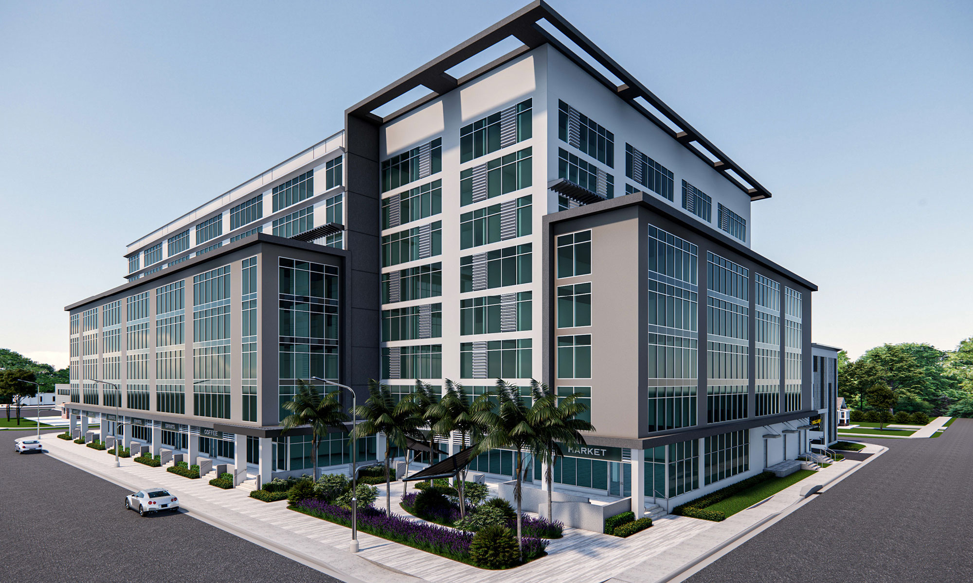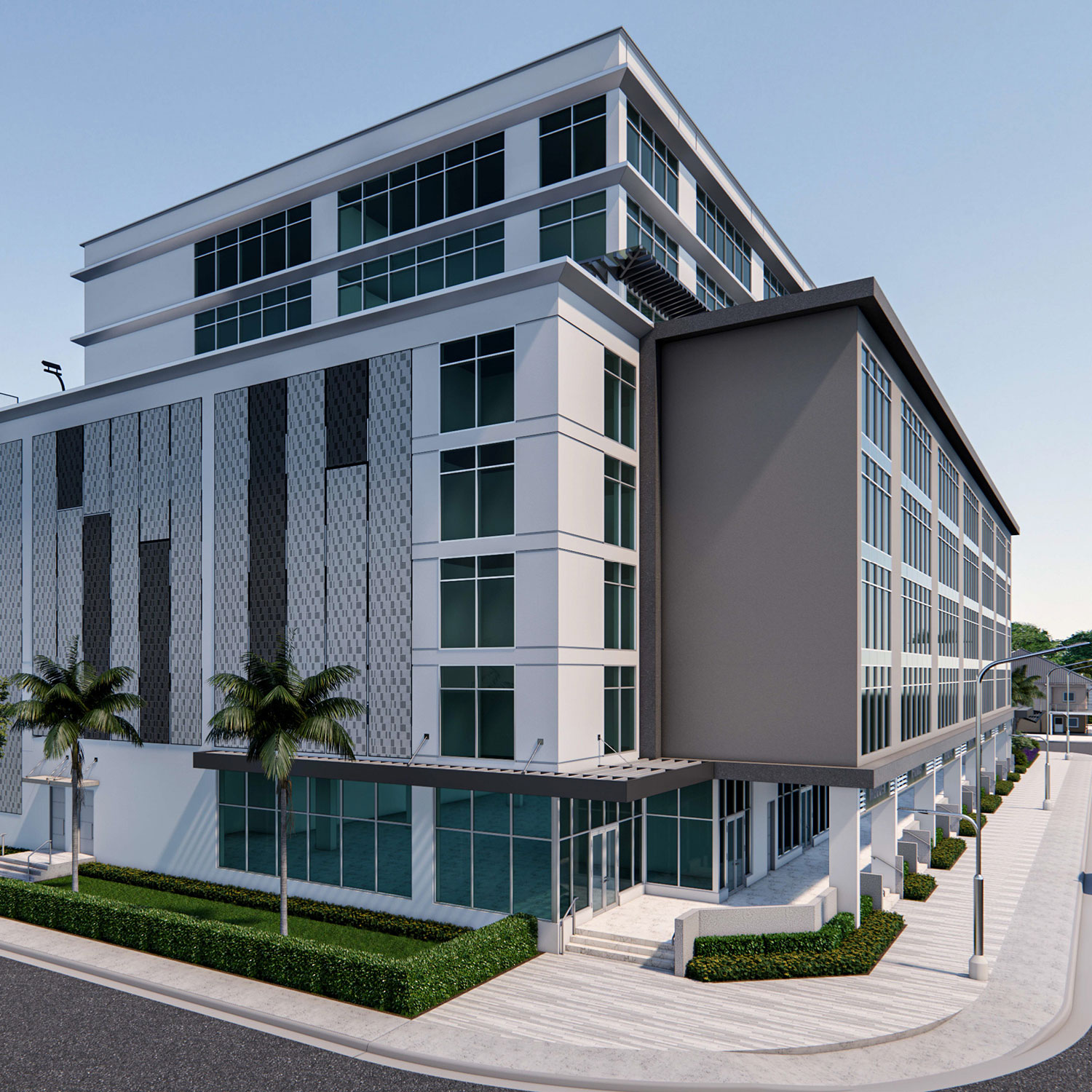The Square is a dynamic new commercial development rising along Hallandale Beach Boulevard, designed to meet the growing demand for flexible workspaces in a vibrant urban setting. This eight-story project features 15,000 square feet of ground-floor retail space, creating a lively streetscape for shops, cafes, and services.