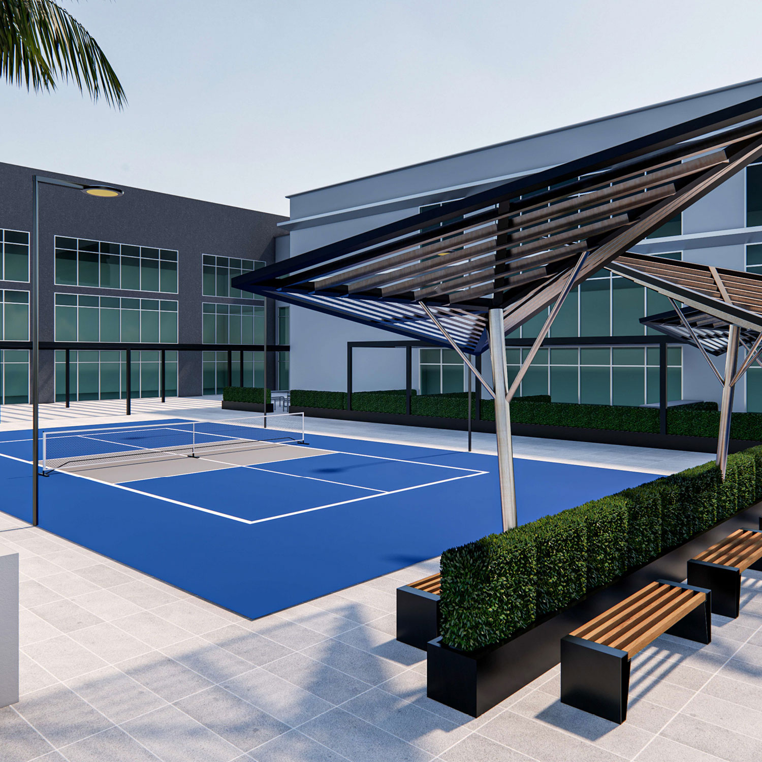 At the heart of the development is the fifth-floor amenities deck, where business and leisure meet. Tenants and owners will enjoy a range of lifestyle features including a padel court, pickleball court, BBQ stations, and multiple conference rooms, fostering a vibrant community atmosphere.